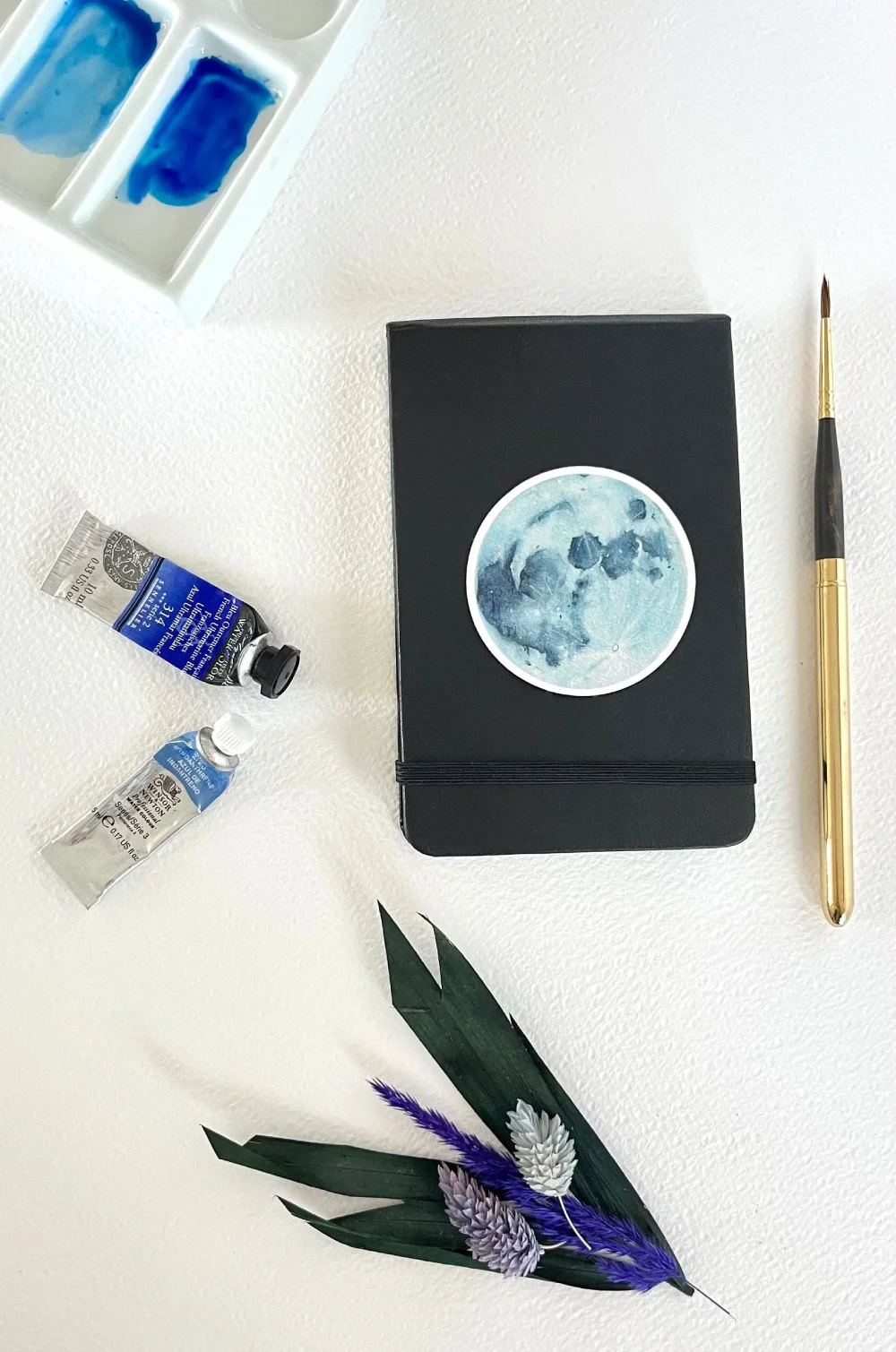 This hand-painted watercolor moon sticker for laptop, car, water bottle or planner is available in two variations: Vinyl and Paper Sticker.
